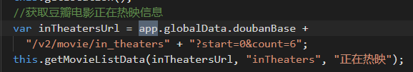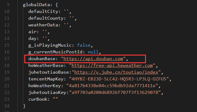 (2)比如,我們要獲取豆瓣電影的時候,我們需要調(diào)用豆瓣的api;我們先在app.js中的gloabData中定義doubanBase