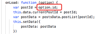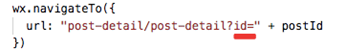 點擊的事件對象可以這么取,var postId = event.currentTarget.dataset.postid;