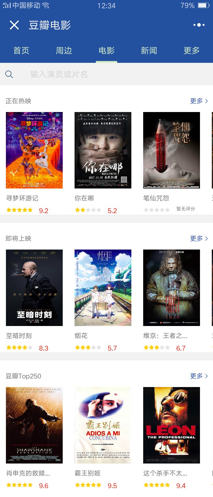 (2)首頁:輪播頭圖,天氣,豆瓣電影正在熱映
