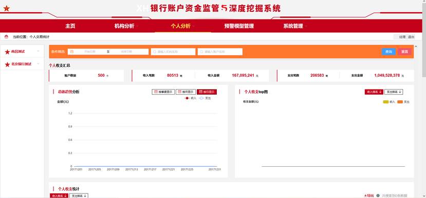 - 收支趨勢分析:全面掌握機構與個人賬戶的收支動態,識別潛在風險。