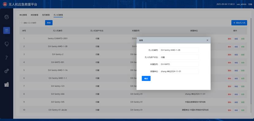 資源極速調(diào)度,救援無需久候。以單位、型號為維度精耕無人機管理,中空機型適配千里勘察,低空機型勝任近距搜救。緊急任務(wù)下瞬時部署,杜絕資源閑置與錯配,讓每一架“能戰(zhàn)之機”即刻奔赴生命前線。